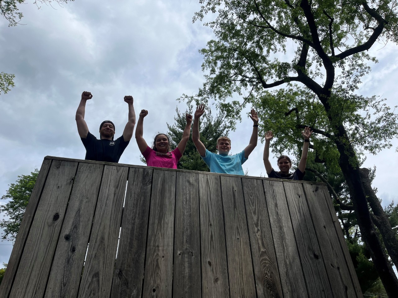 Students pose for a photo after completing the Challenge Course